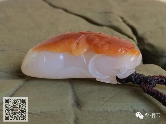 再有就是落款??钍怯竦袷蚬ぷ魇业腖ogo,出现在玉件上很正常,但是不要影响玉件的整体视觉效果。通常,款识尽量不要着色,不要用红印油填充款识的空白处,红红的落款就像在白白的玉件上打了个“红色补丁”,不由得让人想到屠宰场的蓝色印戳。