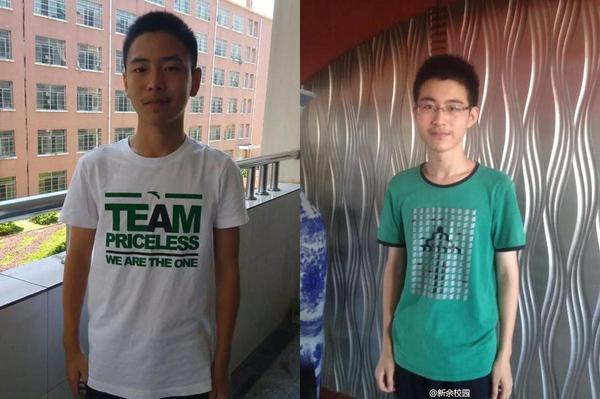 左图:江西理科状元计逸雄700分,来自新余一中;江西文科状元胡煜643分,来自临川一中。