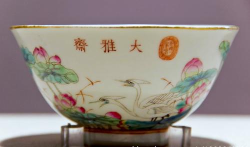 “大雅斋”款粉彩鹭莲纹碗 清光绪