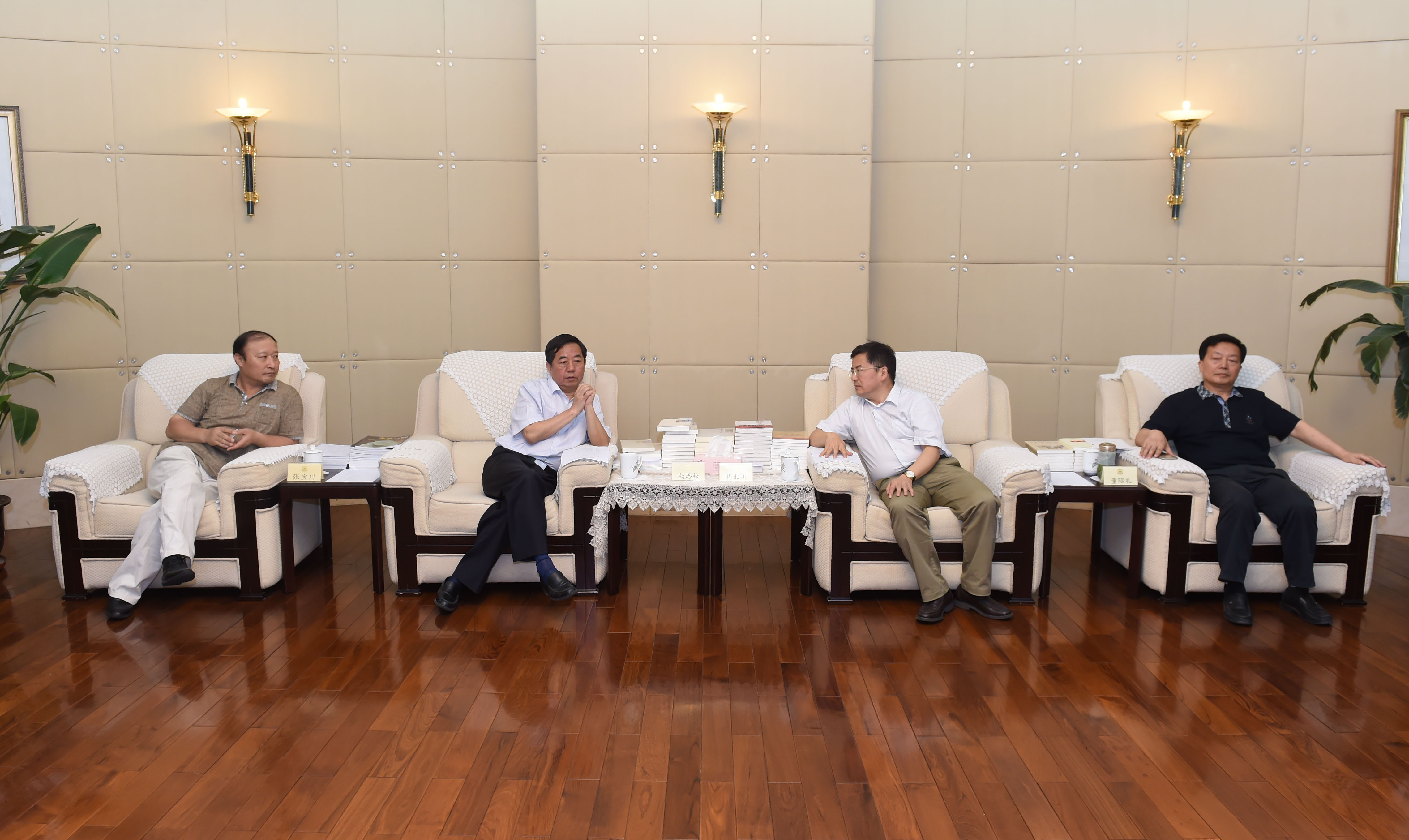 人民政协网北京6月24日电 合肥市政协主席杨思松(左二)、原主席董昭礼(右一)一行6月24日下午到访人民政协报社,就政协新闻信息宣传工作与人民政协报社党组书记、总编辑周北川(右二)、人民政协报社副总编辑张宝川(左一)等座谈交流。 人民政协网记者 姜贵东 摄