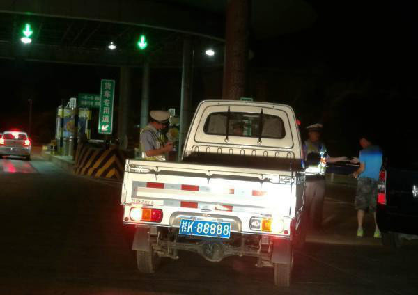 郑州市民周先生日前花费上百万元购买了“桂K88888”的“炸弹号”,把它挂在自己新买的价值3万多元的五菱之光小货车上。没想到,这一巨大的反差几乎让自己的新车“步步维艰”。6月26日晚上,周先生新车到郑州第一天,就在西南高速口被交警拦了下来。民警们严重怀疑这是一辆套牌车,有民警甚至说,“这牌要是真的,我就把它吃了?!苯峁菔恢?、行车证、发动机号一套查下来,竟然全是真的。当时警察同志看周先生的眼神都不太对了。