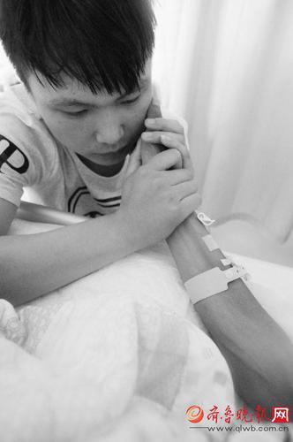 齐鲁晚报6月27日讯(记者 李凤仪)24日下午, 齐鲁晚报记者来到了贾圣超父亲所在的医院—— —单县中心医院, 在消化科一区病房内, 17岁的少年正在细心地为父亲贾海勃擦拭腿部和双脚。他的脸上, 有着同龄人少见的成熟。