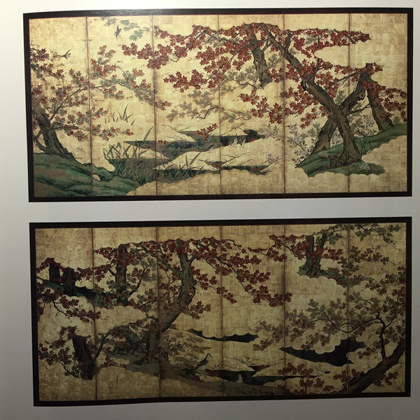 《丹枫图屏风》,山口雪溪,纸本金箔地设色,江户时代。