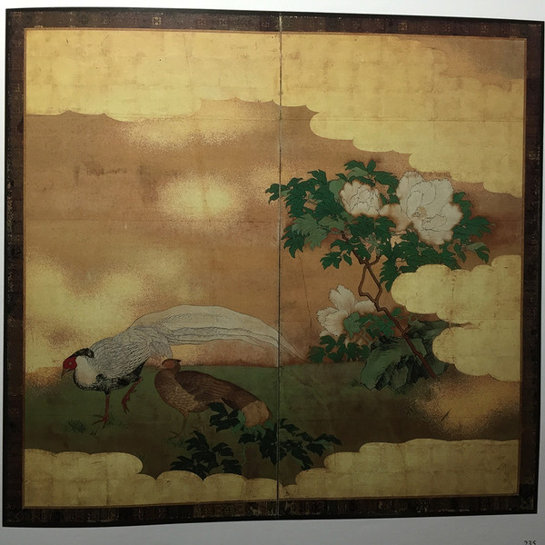 《牡丹与雉鸡屏风》,松村景文,纸本设色,江户时代。