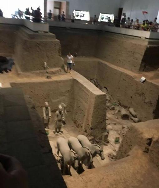 6月28日,秦始皇陵博物院官方回应澄清:网友照片中的“大妈”是博物院的工作人员经过允许下坑为游客捡水杯。