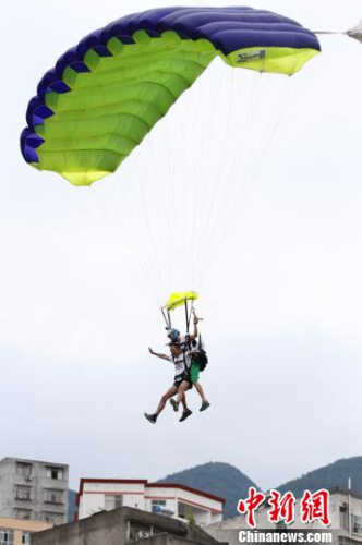 资料图。图为陈行甲跳伞推介巴东旅游 边文海 摄