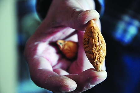 “一枚微雕作品的完工需经历选料、画样、雕刻、开脸、打磨、抛光等诸多环节,每一个环节要求都非常严格?!彼镄碎笏?,在果核上雕刻,是一件既费工又费时的工作。