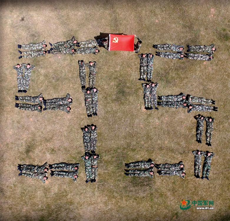 6月28日,武警战士摆出“95”字样庆祝党的生日。