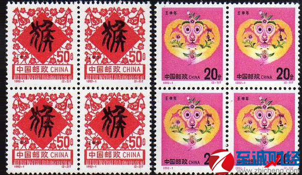 而第二轮生肖邮票的第一枚就是猴票,发行量是443万张,而这枚第二轮猴票在当时很多人都已经有了收藏意识的情况下,被很多人关注,因此在市场上的消耗也比较大,在 存世量来说比较小,在他第二轮猴票包含了你抓猴子造型的邮票和一张“猴”字书法的邮票,在设计上非常喜庆,带有浓厚的中国色彩。这两者因素结合起来,就造 成了现在第二轮猴票价格上涨的现象。