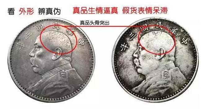 一、 银质辨伪。辨别银圆的真假,首先从辨识银质的真假说起。二、听音辨伪。用拇指和食指两指甲尖对卡银圆中心,或用中指托住银圆中部,用另一枚银圆 撞击,声音清韵柔和的是真银圆。三、包浆辨伪。传世银圆表面有一层氧化银,就是人们常说的包浆。四、锈色辨伪。银圆停止流通后,存放不当会生锈。五、边齿 辩伪。真币边齿平整,大小一致,齿深深浅一致。六、重量辩伪。真币重量标准应在26.86克,但是经过百年流通产生磨损也应达到26.5克,但袁大头一般 在25.5克。