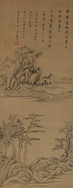 在山水画上,明代晚期是最兴盛的时期,最为突出的是吴门画派后期的有识之士。期间,顾正谊和董其昌都以“华亭派”著称。宋旭与董其昌并行。赵左、沈士充曾就学于宋旭的门下,又各自形成“苏松派”和“云间派”,同为“吴派支流”。虽属吴派体系,但在笔墨的运用上各有自己的特色,以董其昌最为突出。董氏一派风格秀润,提倡仿古,以古拙取胜。与董其昌同时和稍后的还有程嘉饶、李流芳、卞文瑜、杨文驰、邵弥、张学曾,以及被称为老二王的王时敏、王鉴,都是名著一时的文人画家。他们的画风各有不同,都以笔情墨趣为主。
