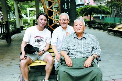 干休所的院子里有一个小小的走廊,种着杏树和一些藤树,小区里的老人不时从这些走廊中穿过。我们就在这里见到了张勇手,他穿着一件白色的“万宝路”的衬衫,须眉尽白,却精神抖擞,他热情地说,妻子张加懋最近身体生病走不了,“我们还在这里采访吧,这里安静凉快?!?br/>