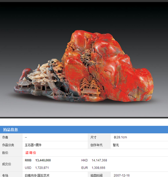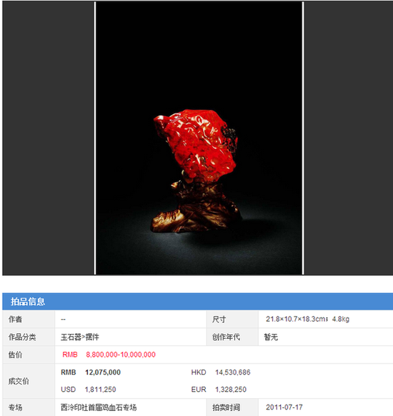 鸡血石历年成交记录: