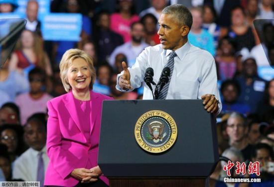 当地时间2016年7月5日,美国北卡罗来纳州夏洛特,美国总统奥巴马首次助阵民主党总统候选人希拉里的竞选集会。据悉,奥巴马和希拉里的关系进入了新的“共生”阶段,希拉里要靠奥巴马的影响力来提高支持率,而奥巴马助希拉里获选可以增加自己的政治遗产。从现在开始的四个月中,这对化敌为友的搭档要不断向公众推销对方。