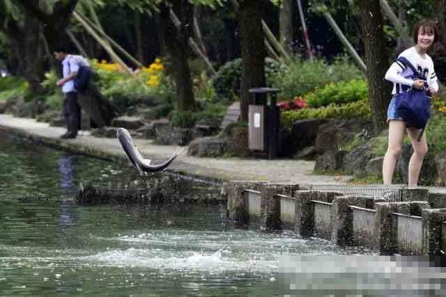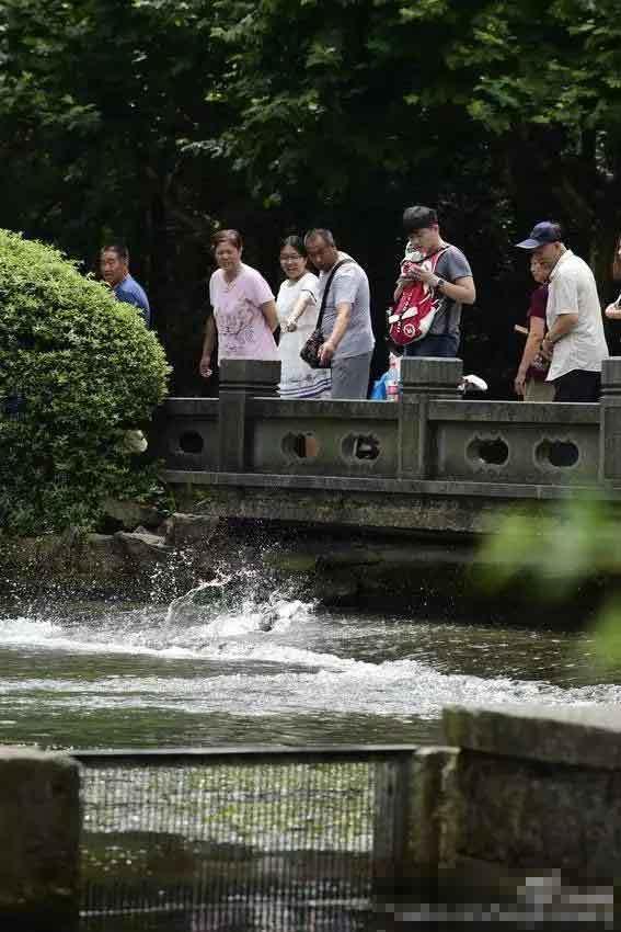 有网友说,这段视频的拍摄地在西湖南线的花港观鱼。今天,我们的摄影记者李忠来到位于南山路花港观鱼公园门口的西湖小南湖进水口栅栏处,拍下了这精彩的一幕。(来自:杭州网)