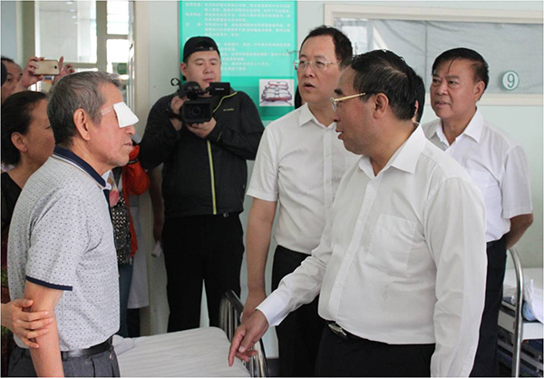 仪式结束后,丛斌还到焦视眼科医院病房看望了即将免费接受复明手术的贫困白内障患者。