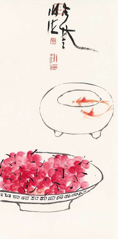 谢海  红红  彩墨纸本  70cm×35cm  2015年