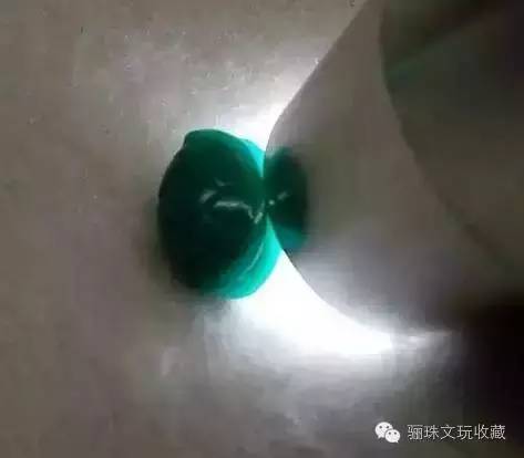 二、 “透”,这里说的透并不是说象翡翠那样,打光通透。绿松石是一种半透明玉石,正常情况下灯光是打不透的。而玉化的绿松石在厚度适中的地方打灯会散发出一种翠色绿光。