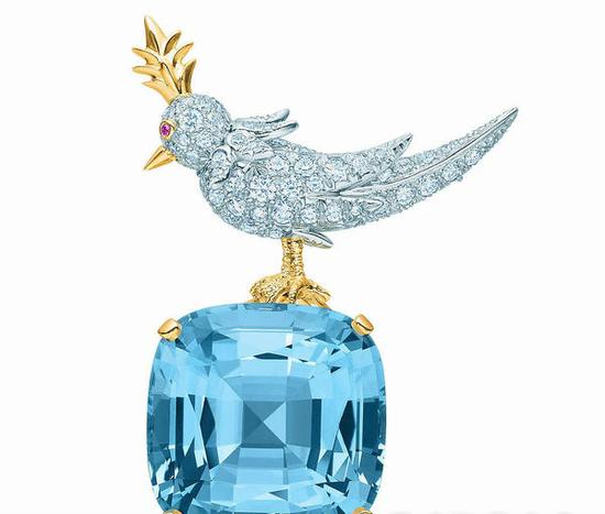 “石上鸟”是史隆伯杰的一款传奇设计,诞生于1956年,由18K金底座镶嵌钻石而成的小鸟栖息于举世闻名的蒂芙尼黄钻(Tiffany Diamond)之上。