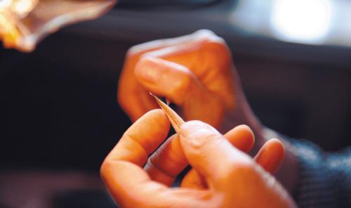 看了一年多,师傅只把择得差不多的笔给张国茹练练手。直到有一次师傅生病了,张国茹终于得到真正的锻炼机会,从此也便逐渐上手了?!罢庑枰桓雒鞯墓?,时间长了,就知道怎么做了。但有时候还是会担心做不好,师傅要是说一句‘择多了’,我心里就得咯噔一下?!?/p>