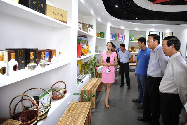 张宝文主席与河北省委副书记赵勇观看广宗县土特产展示