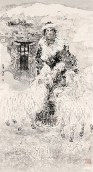 锦江作品《虬松劲 罗衫湿》纸本设色 136x125cm 2013年锦江作品《虬松劲 罗衫湿》纸本设色 136x125cm 2013年