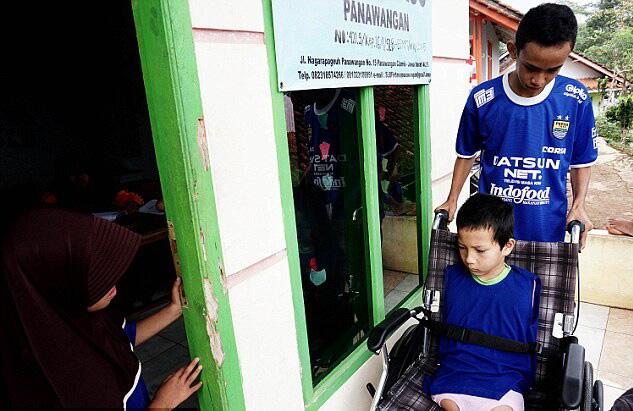 关键词:印尼无腿无臂男童 下巴玩游戏 用嘴写字