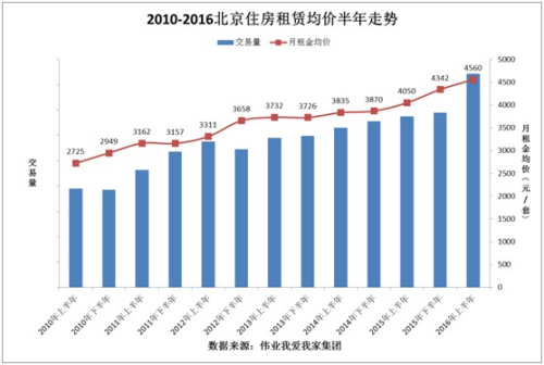 2016年上半年北京最热租房区域 数据来源:伟业我爱我家集团