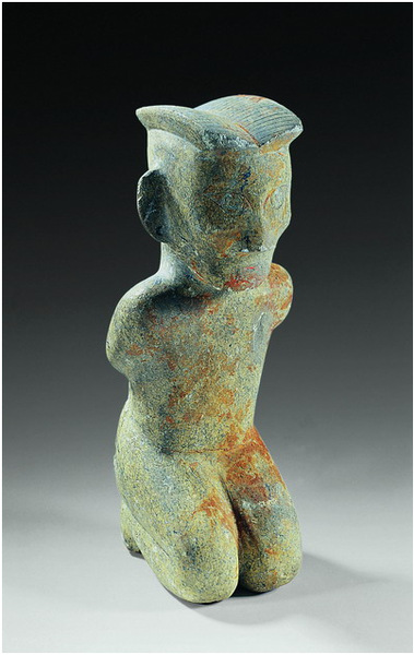 成都金沙遗址是先秦时代古蜀文明重要的祭祀、礼仪中心,时间为商晚期到春秋早期,在这里出土有包括太阳神鸟、黄金面具等在内的大批贵重礼器,其中有一种石雕的跪人像,颇为有趣。