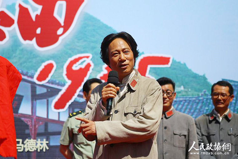 图为毛泽东饰演者王晖在开机仪式上介绍影片。