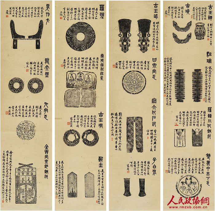 2016西泠春拍 吴大澂考藏金石古物拓本四条屏 成交价218.5万_副本