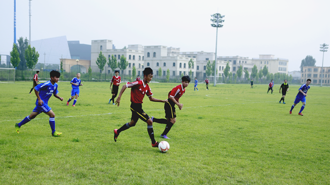 台南一中足球队与北京博澳足球俱乐部队进行了首场比赛