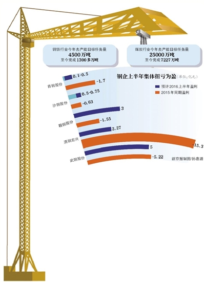 据新京报记者了解,钢铁、煤炭为当前国务院确定的两大去产能行业,两行业在今年的去产能目标任务量分别为4500万吨和2.5亿吨。