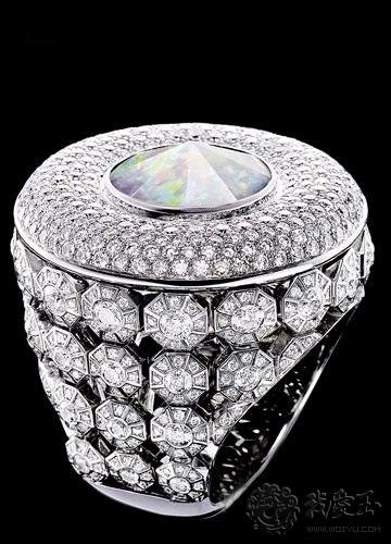 Piaget 18K 白金镶嵌钻石及贵果冻欧泊戒指