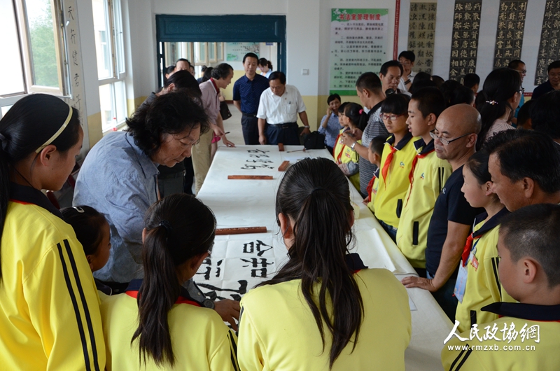 图片说明: 调研中委员们深入课堂教授书法艺术。
