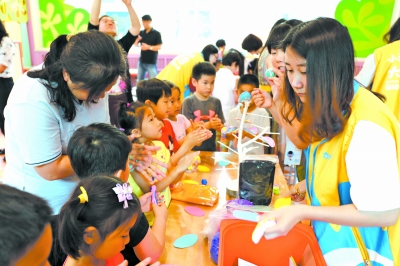 除了让已有展项保持高品质,以及将引导等服务工作做好外,王秀江认为,探索馆还要着力加强展项活动的开发?!傲⒆阋延姓瓜?,我们还要扩展相关活动,让孩子和家长觉得常来常新。比如,在艺术工作坊和快乐厨吧,我们已做了很多尝试,并且效果很不错?!贝送?,在教育活动的开发方面,张旎和她的团队也在做准备和尝试。