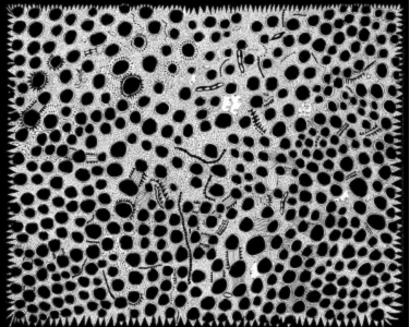 草间弥生通过她的点点绘画和可沉浸体验的雕塑装置,邀请观众跟随波点,抹去自己成为无限大的一部分?!安ǖ悴荒艿ザ来嬖?,”正如草间弥生常说道的,“当我们在众多波点中忘却自然和自身,我们就成为了环境的一部分。”