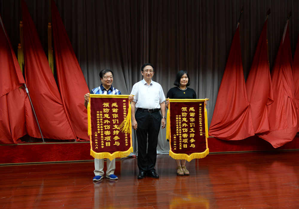 捐赠活动上,农工党中央社会服务部部长刘峻杰致辞。中国妇女发展基金会秘书长秦国英、国务院扶贫办国际合作和社会扶贫司副司长王春燕、中国曲艺家协会主席姜昆先后讲话。姜昆指出,现在我国每年有20万名未成年人遭受意外伤害,众多未成年人“意外伤害事件”的背后,既有未成年人安全自护缺失的原因,又有监护人及相关场所的大人们预防意识伤害意识不足的原因。我们必须动员全社会的力量,提高未成年和监护人预防意外伤害的能力。