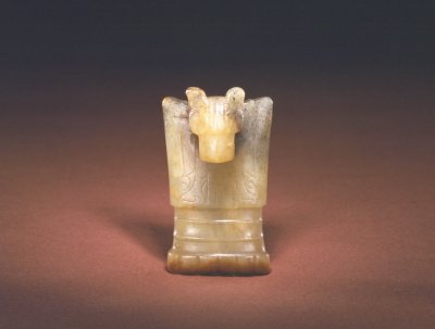 玉兽首饰件,商,长4.5cm,宽2.6cm,厚1.5cm。清宫旧藏