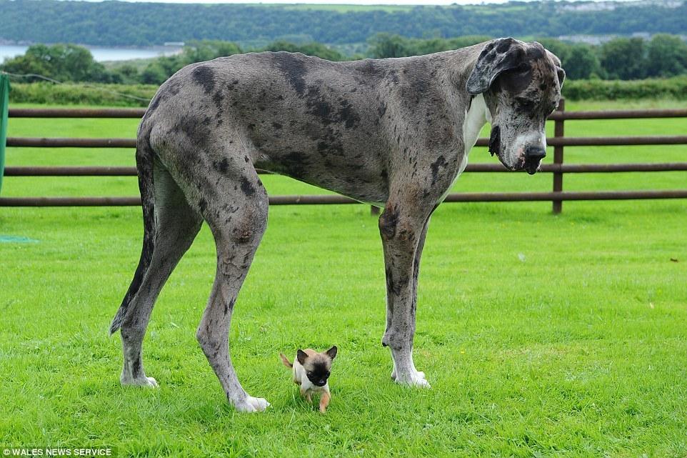 关键词:最萌身高差 世界最高狗戴恩 最迷你的小型犬