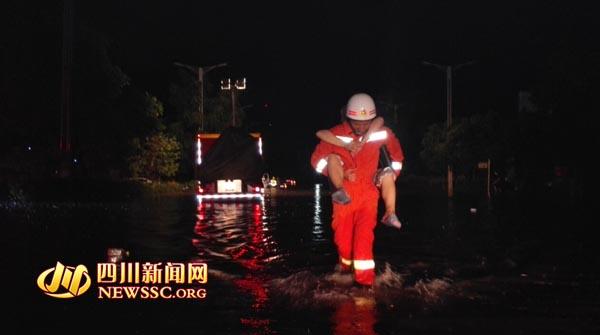 据自贡消防特勤中队中队长王朋回忆,“我们到现场的时候,最深的地方淹到了膝盖处,已经有七八台车子熄火,被困水中?!?/p>