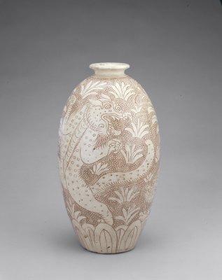 珍珠地划花双虎纹瓶(宋)登封窑博物院藏