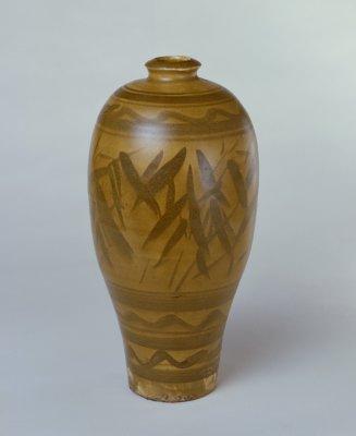 黄釉黑彩竹纹瓶(宋)博物院藏
