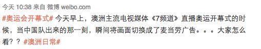 针对于中国队入场被澳媒强行切断,而放入广告,网上产生了一个专门的讨论: