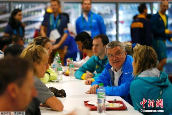 当地时间7月28日,国际奥委会主席巴赫进驻里约奥运村,巴赫居住的房间里有两张单人床和一个简易衣柜。当天,巴赫在奥运村的运动员餐厅用餐,会见了两名参加本次奥运会的难民运动员。