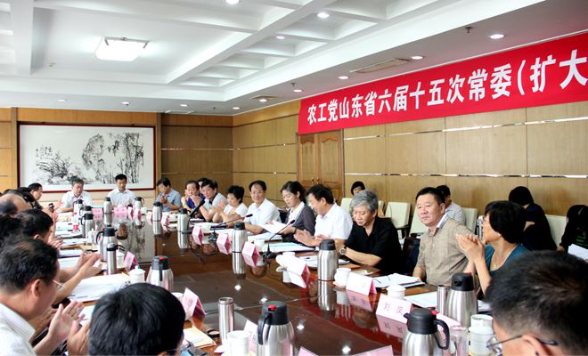 2016年8月8日, 农工党山东省六届十五次常委扩大会议在济南召开?;嵋樯钊胙傲讼敖阶苁榧窃谇熳V泄膊吵闪?5周年大会上的重要讲话精神,传达学习了中共山东省委十届十四次全体会议和省各民主党派、工商联负责人研讨班会议精神,部署安排了市级组织换届工作。农工党山东省委会主委段青英出席会议并讲话。