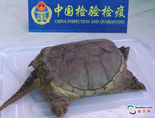 珠海拱北口岸查获“生态杀手”北美拟鳄龟(图)
