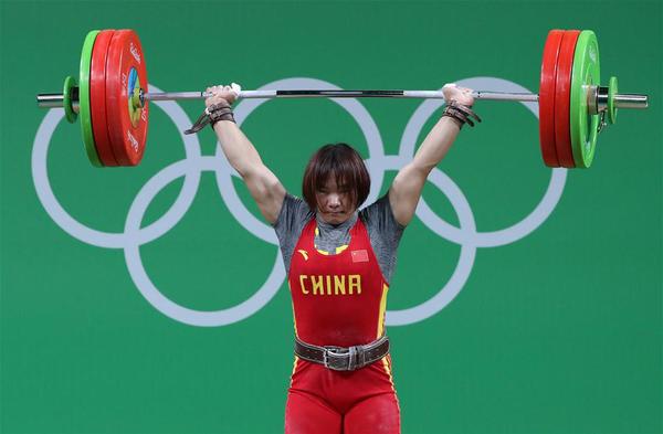 8月10日,向艳梅在挺举比赛中。当日,在2016年里约奥运会女子举重69公斤级决赛中,中国选手向艳梅以261公斤的总成绩夺得冠军。