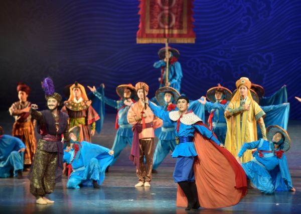 8月10日,演员在福建大剧院为闽港青年交流团成员表演大型歌舞剧《丝海梦寻》。