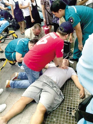 原标题:七夕约会路上 郑州男护士跪地救人(图)